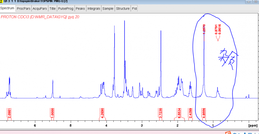 请问过完硅胶柱后,始终都有如图氢谱圈出来的杂质氢信号,碳谱中也多了一个很高的29.7的峰,请问是什么杂质,怎么处理除去??看起来像是“grease”,,可是怎么除去这个东西,这是过完硅胶柱的样品,为什么始终都有这个杂质???? 捕获.PNG 捕获2.PNG |