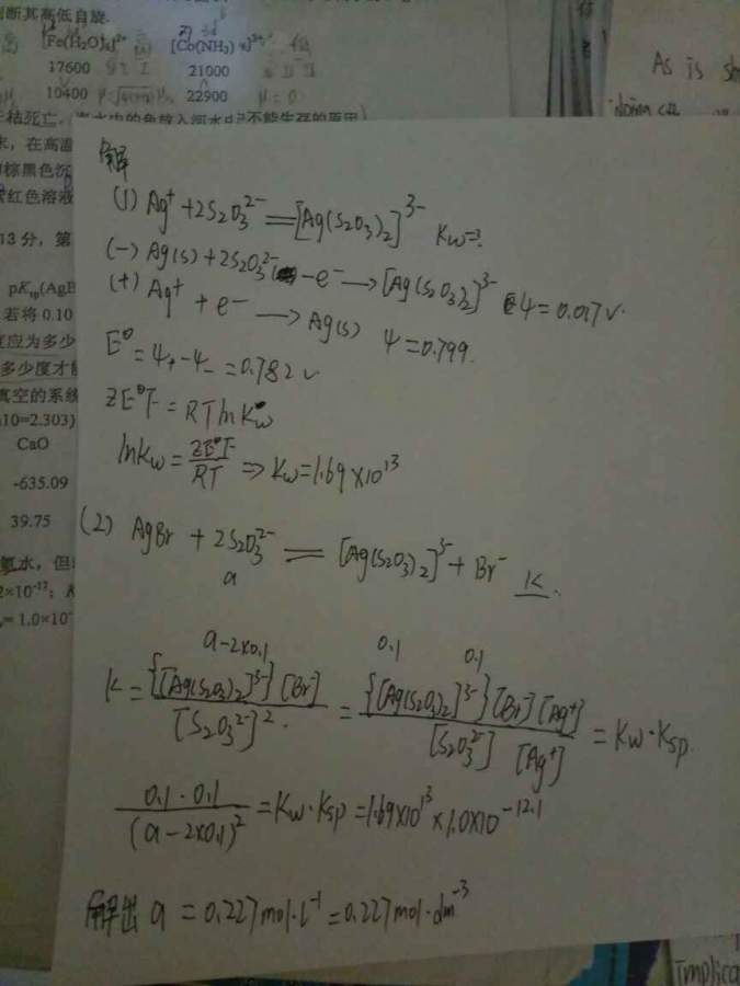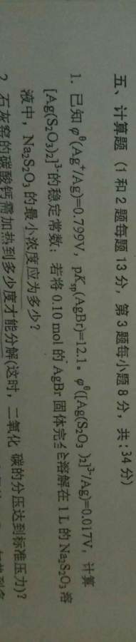 老师们可以帮我看看计算题的第一题么?我自己已按我想的写下了算法,但是我不确定第二问求最小浓度的算法是否正确?您们可否帮我看看?十分感谢 发自小木虫Android客户端 |