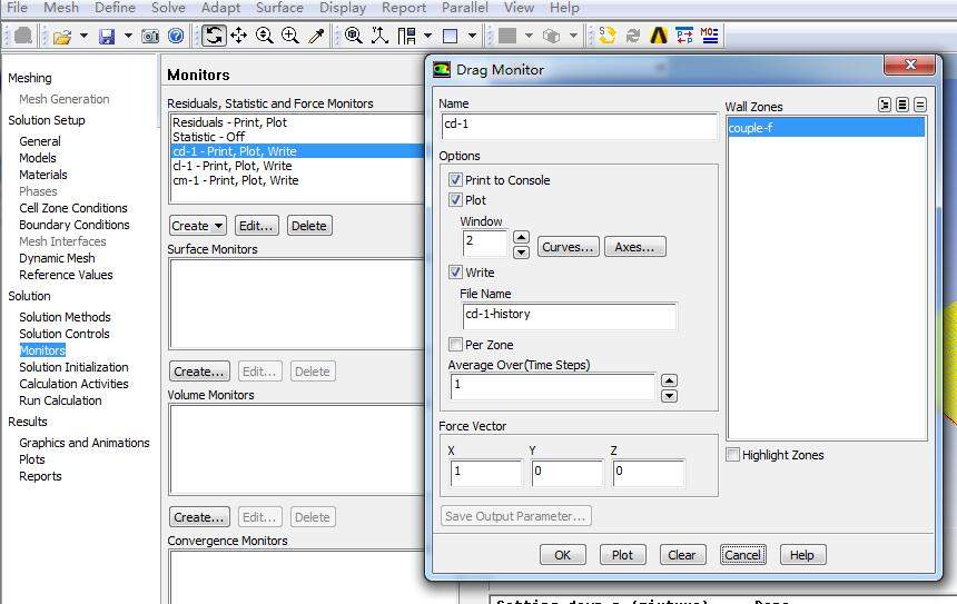 用workbench system coupling做管束流固耦合模拟,流体为水,总共9根管,现要提取每根管的升阻力系数,始终找不到方法 在monitor里设置得到的只有一个管束整体的升阻力系数 请问怎样才能分别提取每根管上的系数 [7(Q2(7L[1~][U(0AOA2EE7.jpg 阻力系数.png 升力系数.png |
