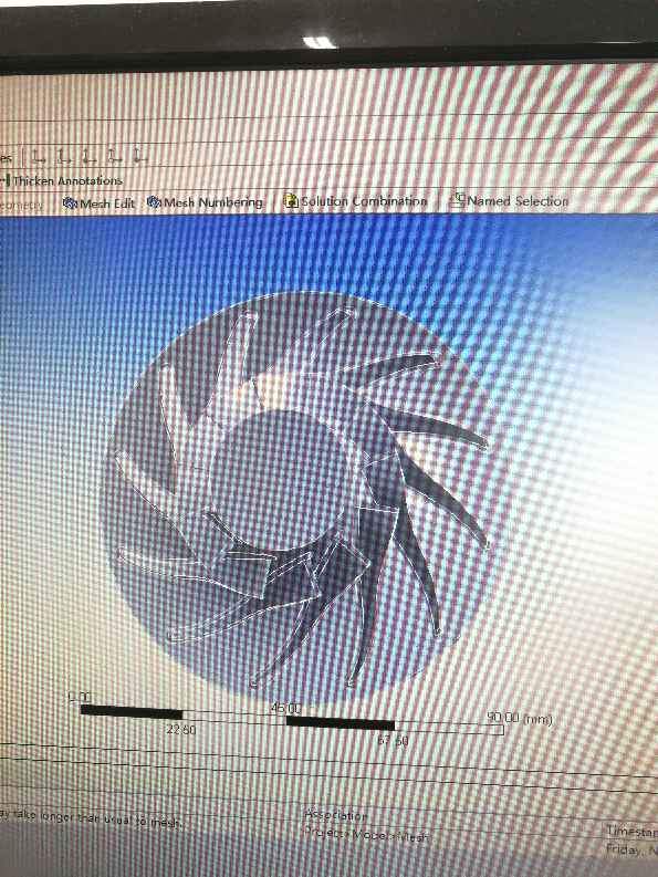 要给离心涡轮算离心力和热应力,现在涡轮的网格生成就已经出现错误,这个涡轮分两部分,轴和叶片一体,后面是轮盘,自动生成网格出现了错误,有没有其他什么方法帮助生成网格 发自小木虫Android客户端 |