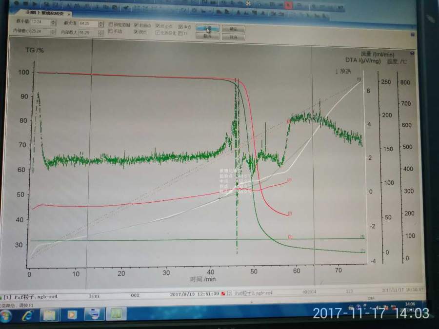耐驰的ST2500,左边TG,右边DTA。测试玻璃化温度与文献差距很大,绿色约2个月前做的加热到750左右。红色和蓝色为今天刚做,加热到600。联系技术人员说DTA不灵敏,应该用铝坩埚,最后用的铂金坩埚。用氧化铝坩埚的绿色和红色曲线玻璃化温度均为490左右,铂金坩埚的约460左右。问题出在哪里求问。 1.jpg 2.jpg 3.jpg |