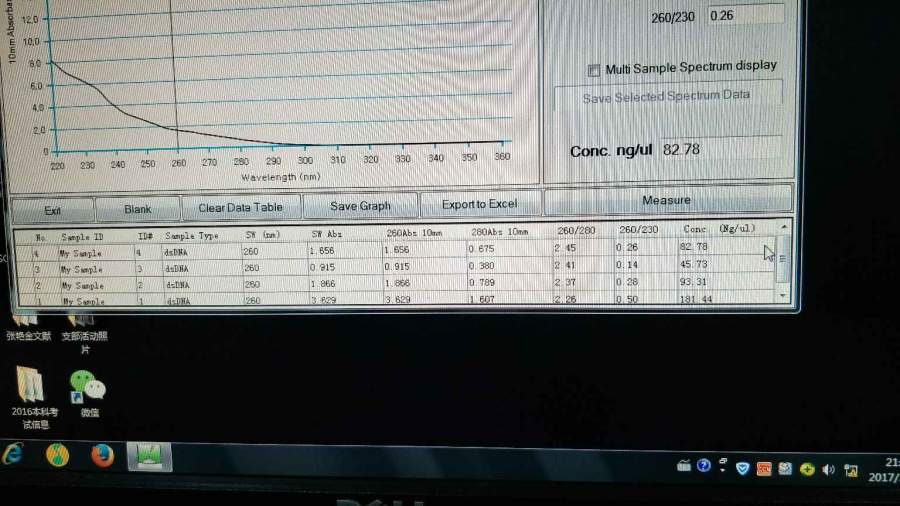 用试剂盒提取的昆虫DNA,然后用分光光度计测定浓度。