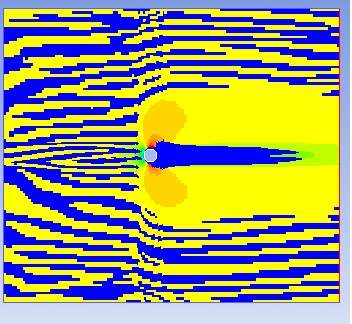 用fluent 多相流模型 模拟空气和水滴绕圆柱的流动,但是用欧拉模型不收敛,用mixture模型能收敛,但得到二相水滴的云图有问题,具体如下。