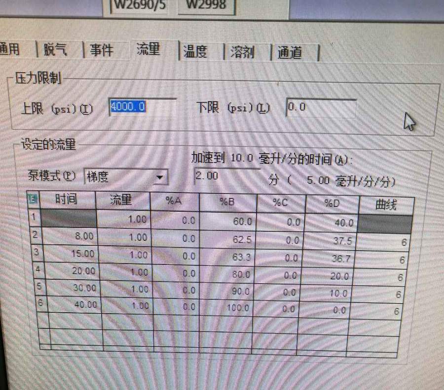 如图,目标峰10分钟左右出峰,但前面还有一个小峰没分开,流动相为乙腈水,梯度如图,求大神指点,怎样才能使峰分离度好一点