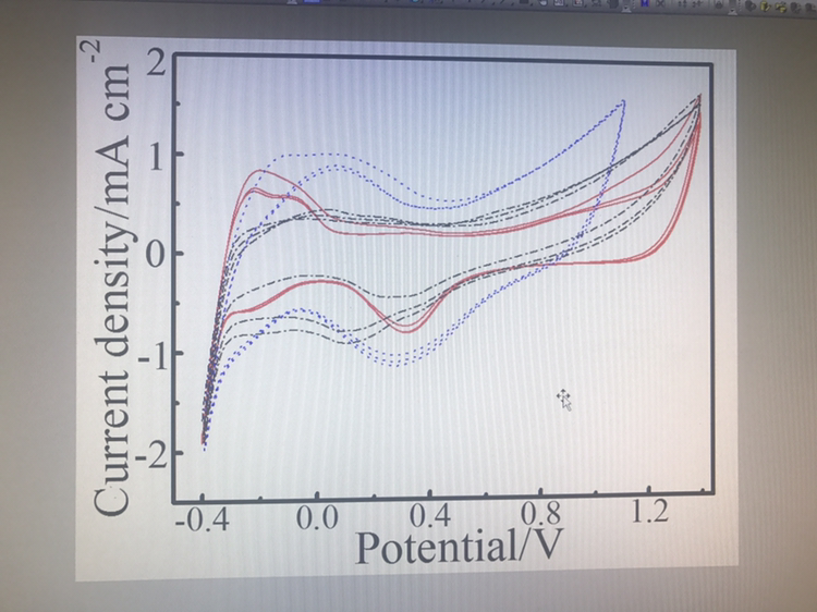 图中蓝线和和红线设置的一样扫描范围和参数,一样的材料,为何最大电压范围不一样呢 发自小木虫IOS客户端 |
