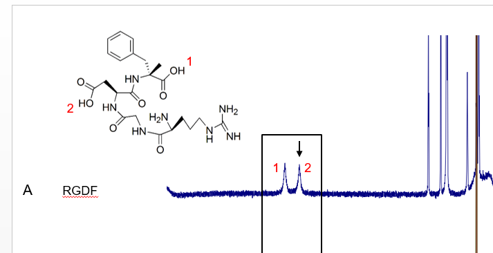 请问图中RGDF中的两个羧基的位置我判断的对不对,如果与高分子上的氨基相互偶联,哪一个的羧基活性更高,更易发生反应呢?谢谢!