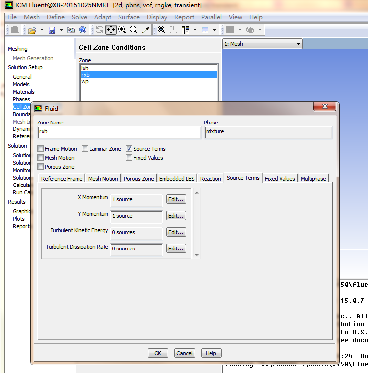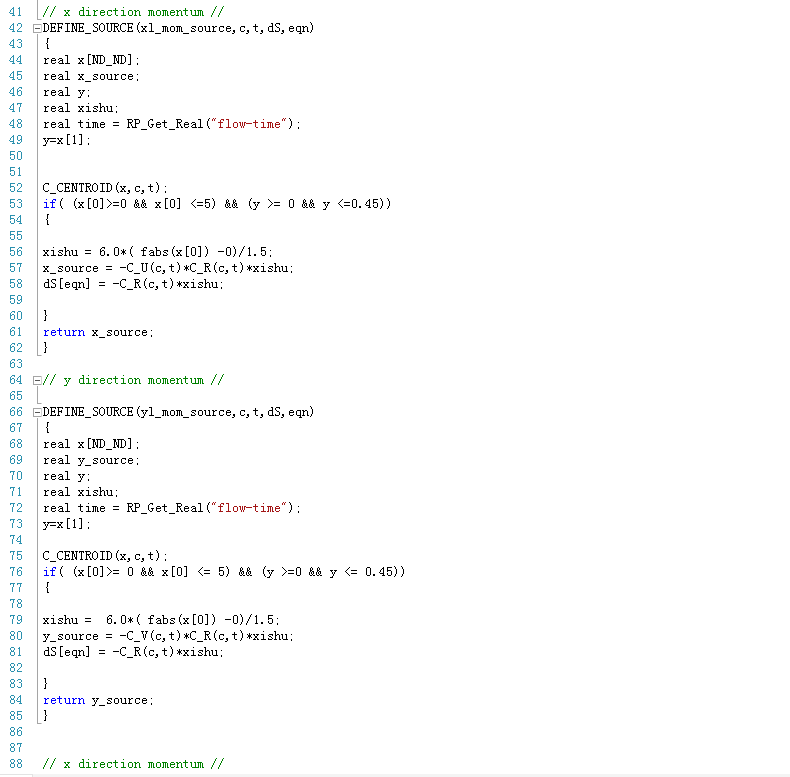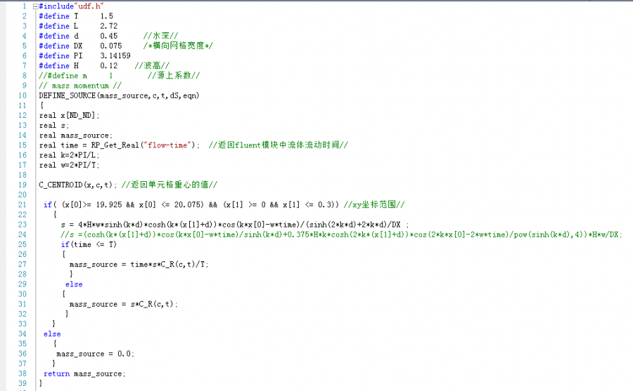 我上传了我的udf和cell zones condition的截图,在UDF里我定义了造波的mass source和消波的mom source。但是在fluent里设置的时候,在source terms里只有x和y方向的动量,没出现可以添加mass source地方。求大神们帮忙解答![]() udf1.png udf.png fluent.png |