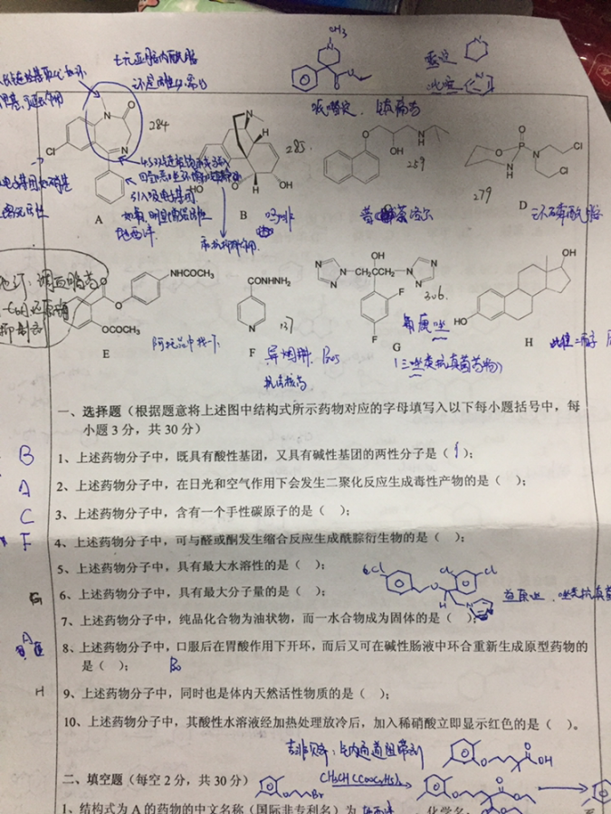 请各位大神辛苦看下 5 7 10三个应该选哪个 也受累看下我自己写好的对不对 另外 请赐教下E是什么 感觉像苯胺类 可是又找不到… 发自小木虫IOS客户端 |
