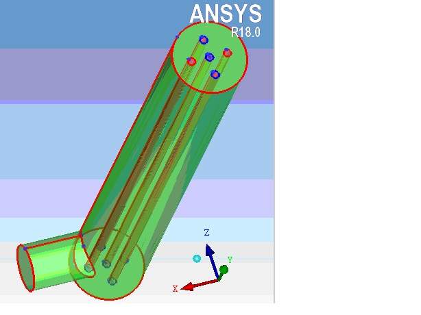 问题描述:外面的圆柱为壳体(wall),内部5个圆柱为中空纤维壁面(多孔介质),侧面的圆柱侧圆为蒸汽出口,上侧小5个圆面为热流体入口,下侧5个小圆面为热流体出口,其余为wall。现在的问题是网格不知道怎么划分,另外,5个小圆柱体内部壁面需划分边界层,求大神能帮忙划分一下,谢谢了。文件在附件里,版本是18.0。 1.jpg |