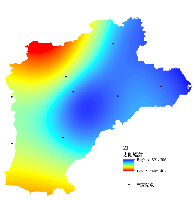 我在arcgis中采用Spline插值方法,将8个气象站点的太阳辐射数据进行空间插值,插值结果如图所示。 8个站点本身的数据都是正值,现在遇到的问题是插值结果中会产生负值,请教各位这个如何解决? rss.png |
