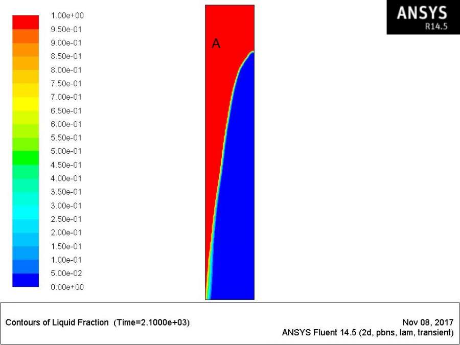 用Fluent仿真石蜡的熔化,想问一下如何能获得已经熔化的部分在整个模型中所占的比例? 如图中所示,A部分在整个模型中占比是百分之多少? 在Fluent或者Tecplot中获得这个比例都可以,或者有其他方法。 liquid fraction-2100s.jpg |
