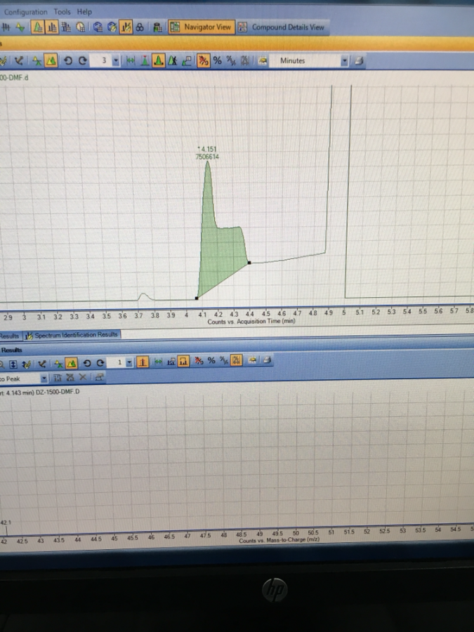 GCMS做的,DB-5ms的色谱柱,DMF,DMSO作为溶剂都试过,一直出现这样的拖尾,求大神帮忙分析一下 发自小木虫IOS客户端 |