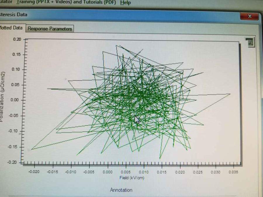本人用Bi2O3 Fe2O3 固相烧结制备铁酸铋,xrd测粉体是纯的BFO,烧结成陶瓷后镀银浆烧电极,做电滞回线时候一团糟,如图,到底什么原因?