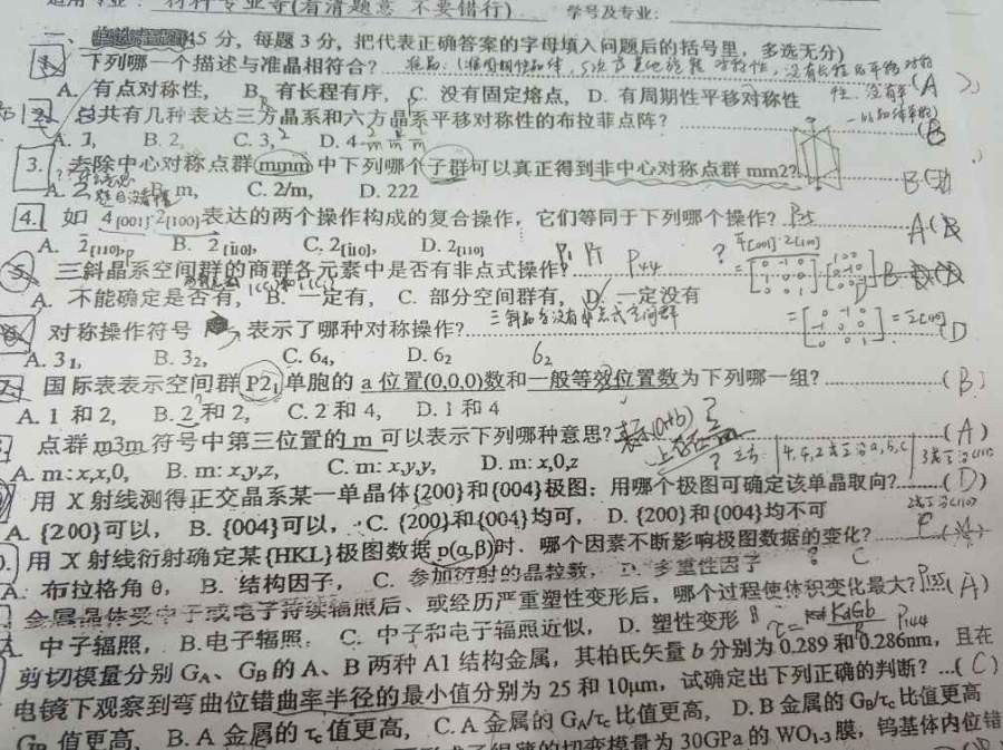 求助晶体点群题目 已有2人参与