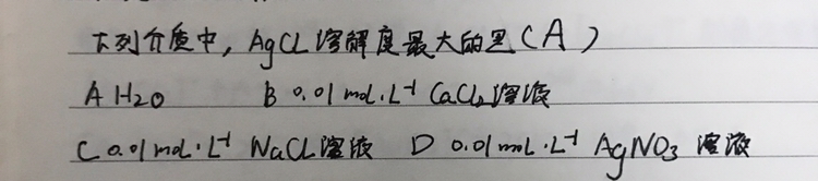 这个题选A没错吧?怎么看别人选的D。 我选A是根据同离子效应判断的 发自小木虫IOS客户端 |