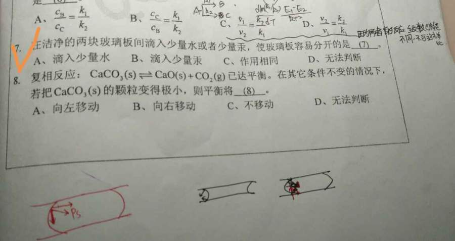 如下面图片第7题,为什么两者不是作用相同呢?他们的附加压力不是都是指向圆心,然后在竖直方向上都有分力所以我认为两者作用是相同的,都使玻璃难以分开? 答案是水使玻璃难分开,汞使玻璃容易分开,怎么解释呢? 在此先谢过各位。 发自小木虫Android客户端 |