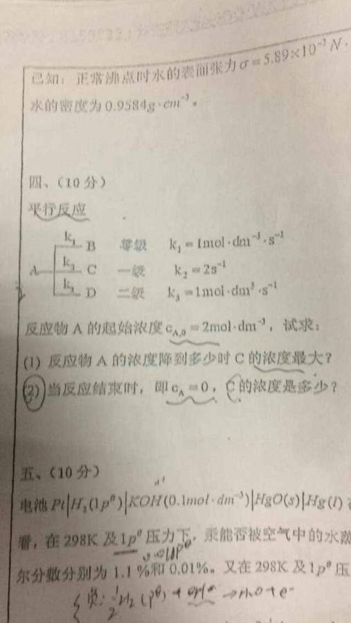 物化里面的一道化学动力学求解