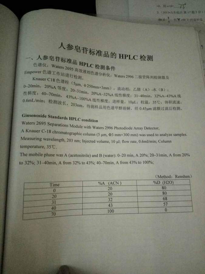 漂移管温度70,压力30psi,流量1mg/ml,流动相梯度洗脱方法如图2,求助大神问题在哪,出峰的保留时间是对的,只是基线太不平了 发自小木虫Android客户端 |