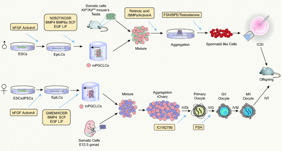 一篇赵小阳教授作为通讯作者的Perspective文章,发表于影响因子8.843的国产刊National Science Review,欢迎免费看原文哦:Gamete differentiation from pluripotent stem cells 如果我们可以从不育症患者自身的多能干细胞出发,人工诱导,将其分化为有功能的生殖细胞,再结合体外受精等生殖医学手段,将可能为不能产生生殖细胞的患者带来新的生育希望。 在这篇文章中,赵小阳老师综合介绍了多能干细胞分化为配子细胞的已有研究结果,包括:将小鼠多能干细胞体外诱导为有功能的精子或卵细胞,以及人类细胞的体外实验进展。此外,文章还探讨了这一领域进一步发展所面临的技术挑战和伦理问题。 【文章图】从小鼠多能干细胞诱导产生有功能的精子和卵细胞 【文章图】从人源多能干细胞诱导产生生殖细胞 |