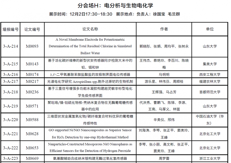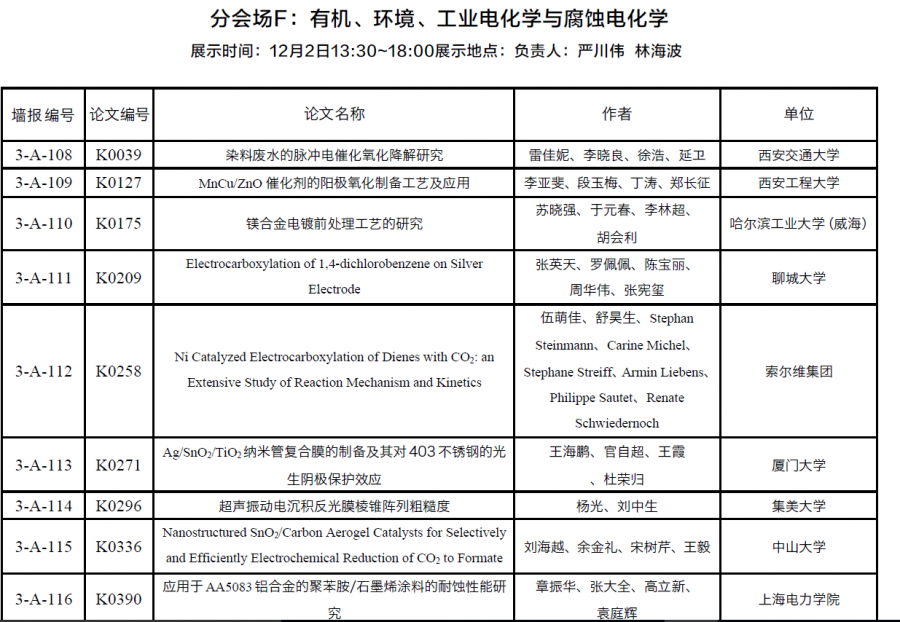 第十九次全国电化学大会会议论文摘要—其他方向 该部分包括: I-其他化学电源 J-光电化学与新型太阳能电池 K-有机、环境、工业电化学与腐蚀电化学 M-电分析与生物电化学 N-电化学仪器与设备应用技术 1234.png 12.png |