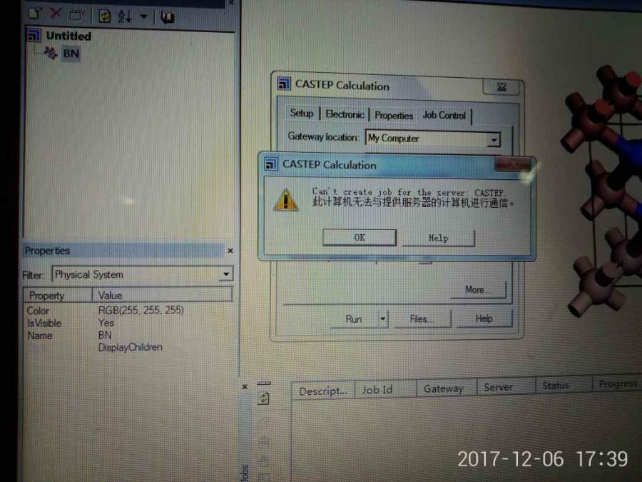 刚刚装好的material studio软件,无法进行计算操作,显示“”此计算机无法与提供服务器的计算机进行通信”这句话是什么意思?如何解决此类问题? 发自小木虫Android客户端 |