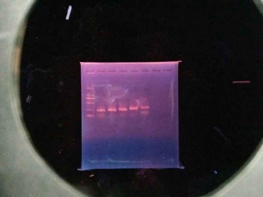 PCR完跑DGGE胶,结果为什么会这样,第二张图是把PCR的结果跑的琼脂糖,求助为什么会这样啊! 发自小木虫Android客户端 |