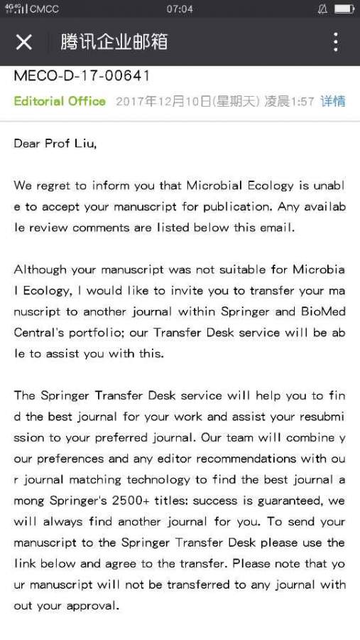 前几天投稿今早收到拒稿信,但是帮忙推荐杂志,这个是免费的还是收费的?没遇到过这个问题