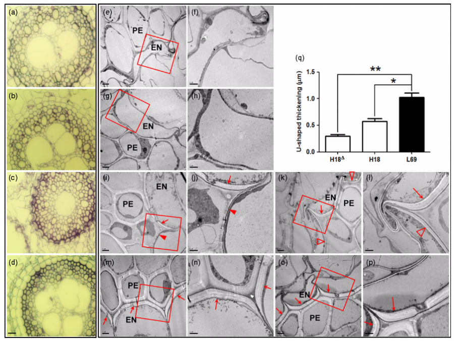 镉污染问题严重威胁着粮食安全和人类健康,如何有效治理土壤镉污染愈发受到人们的关注。作为最具前景的生物质能源植物之一,甜高粱具有茎秆含糖量高、生长周期短、生物量大、抗逆性强、适种范围广等优势,利用其修复镉污染土壤,茎秆和籽粒生产燃料乙醇,酒糟用于燃烧发电,镉元素可从灰烬中加以回收。这样镉就从食物链转移到能源链中,兼顾了生态和经济效益。目前人们对甜高粱吸收镉的研究较少,且多局限于生理层面。同时,甜高粱作为非超富集植物,吸收的镉多储存于根中,限制了其从污染土壤中提取镉的能力。因此,解析甜高粱吸收镉的生理和分子机理、促进镉从根向地上部分的转运是提高甜高粱吸收镉能力的重要前提。 中国科学院植物研究所李银心研究组对来自全球不同地区的96个甜高粱品系进行了筛选,发现不同品系对镉的耐受、吸收和转运能力具有很大差异。根据筛选结果,研究人员以镉转运能力强和弱的两个甜高粱品系H18和L69(镉转运系数相差4倍)为材料,针对影响甜高粱吸收和转运镉的关键因素开展研究。研究结果表明,H18通过共质体途径吸收的镉显著高于L69,且其根的内皮层中质外体屏障较L69更弱,木质部汁液中镉的含量也更高。研究人员利用比较转录组学,通过分析两个品系间的差异表达基因及镉响应基因的异同,将镉转运能力差异主要聚焦到苯丙素和木质素合成以及细胞壁修饰过程。 同时,一些金属转运蛋白基因的差异表达也可能是导致两个甜高粱品系对镉吸收和转运能力不同的重要原因。由此,研究人员提出根的吸收、细胞壁的结合、内皮层的阻隔作用,以及木质部装载等多个过程的协同作用决定了甜高粱对镉的吸收和转运能力。 该研究从生理、细胞和分子水平初步揭示了甜高粱吸收镉的机理,鉴定出多个影响镉吸收和转运的关键基因,为利用生物技术提高甜高粱吸收镉的能力提供了新的靶标和思路。 |