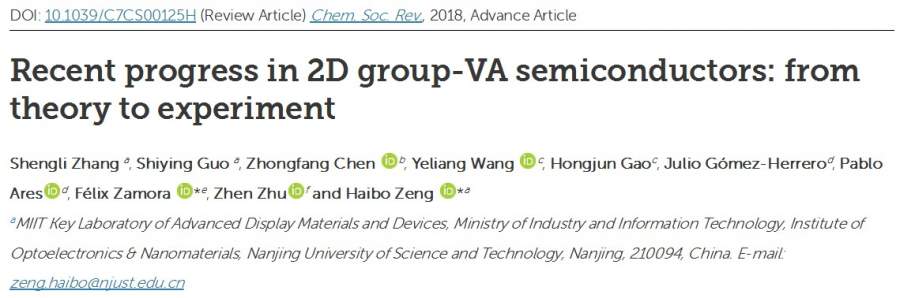 2018年最新综述--第五主族二维材料磷烯,砷烯,锑烯,和铋烯