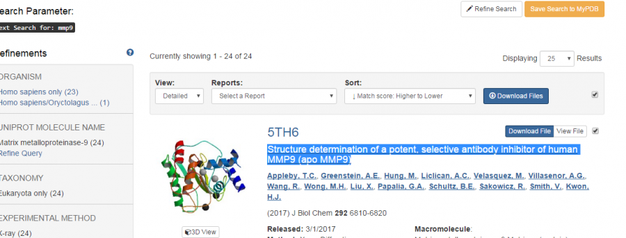 我在pdb上输入MMP9的时候出来了一大堆蛋白,我该怎么判断哪个是我想要的?已有1人参与