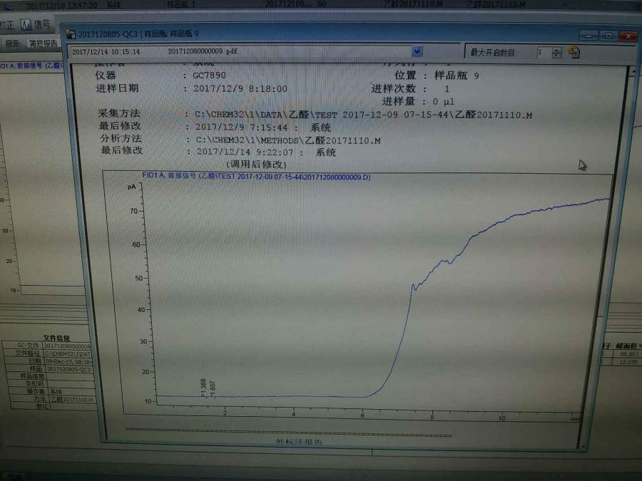 气相在样品中乙醛含量过程中基线越飘越高(图1)。经过老化后基线下来了,到做空白时出现峰(图2)第二个峰应该是含量峰,空白中应该没有峰的。是不是我的柱子有问题了?我也换过衬管,截取一段柱子了。 发自小木虫Android客户端 |