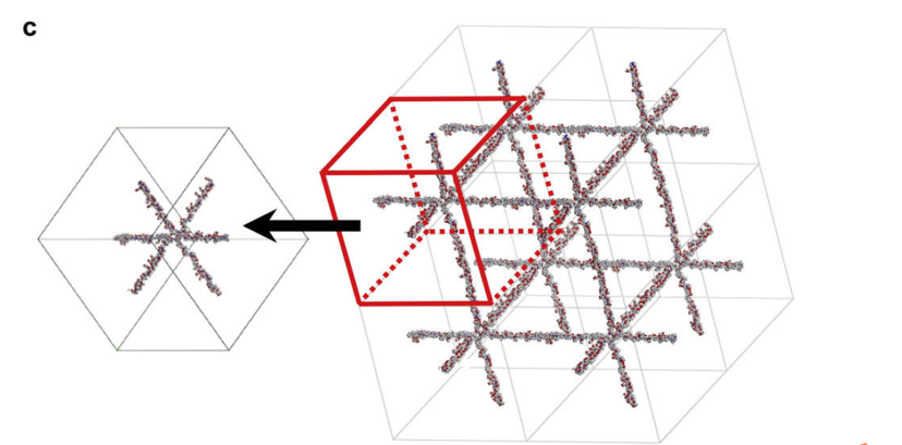 左图的构建,得看这个聚合物是什么形式的。 如果晶体,参见以下链接中的问题5、6和9: http://muchong.com/t-11279111-1。 如果是无定型物,用MS构建Amorphous cell即可。要做到“做到三个方向各两个”,这不是问题,构建结构的时候画得对称即可。这种对称,是初始结构,展示出来的视觉效果好看而已,在实际中,经过计算后的结构基本都会变形。 光看图是无法确定具体是用什么方法构建的。你不是在看文献吗,左图这个结构是怎么来的,文献里应该会说明的。 获得左图之后,按照3楼中方法,即可实现左图和右图的转换。 |