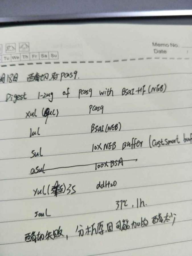 有人使用Bsai-HF酶切过质粒吗?酶切体系是多少?切了有多长时间?我用50ul的体系37摄氏度℃切了一个小时,结果跑胶时,发现什么条带都没有?原质粒对照是有条带的。切的是pcas9质粒,是转化到感受态细胞后,提取的。希望有知道的指导一下