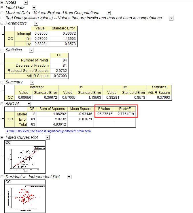 各位老师,同学,大家好! 我根据一组Y指和X值已经通过origin做出一元二次回归方程,我现在要查看这个方程是否通过显著性,该如何查看? 是不是根据“ANOVA”这一项中的F值进行判定?例如下图所示的F值为25.37615,那么这个值该大于多少是通过显著性检验呢? origin统计表.jpg@laosam280 |