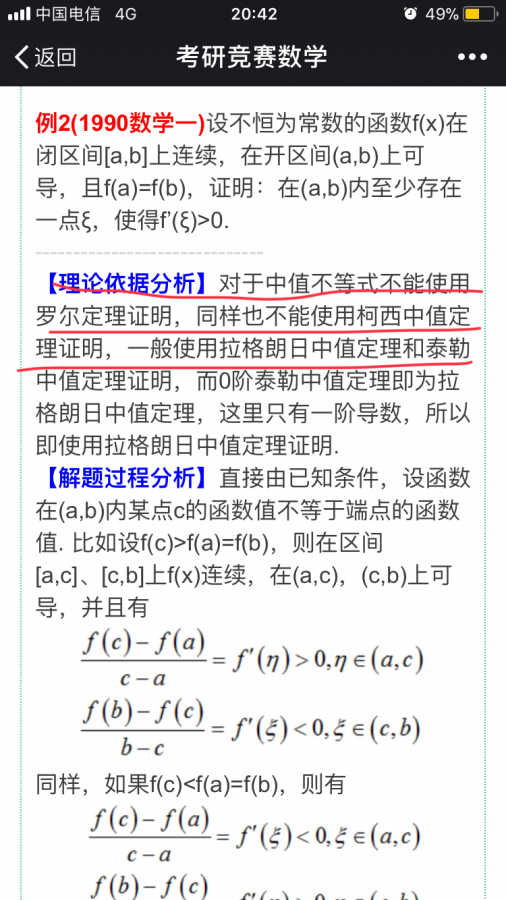 分析中说得很清楚是"中值不等式“而非”中值定理“不能用罗尔定理证明,怎么读的。