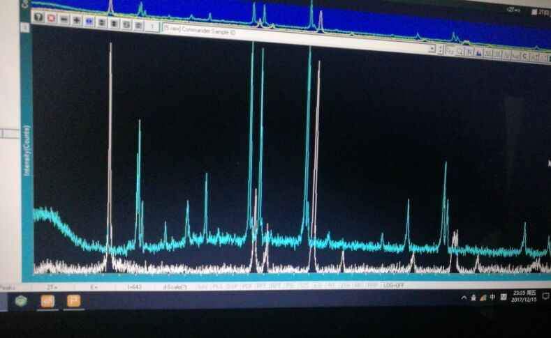测xrd的时候工程师把换成九位的,结果装样的模具也换了,样品太少结果装样的时候没压成和模具台一样高,结果测成蓝色的那个样,这是怎么回事?(白色的是以前样品测的,不是同一个样品)