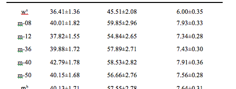 表格见下图。他的意思是要把表格中的数字改成没有小数点的?那不是很奇怪?还是制药改文中提到的数据?
