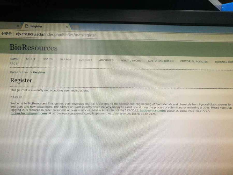 | 现在Bioresources是不能注册了吗?我点完注册之后出来这么一句话“This journal is currently not accepting user registrations”,咋整? |