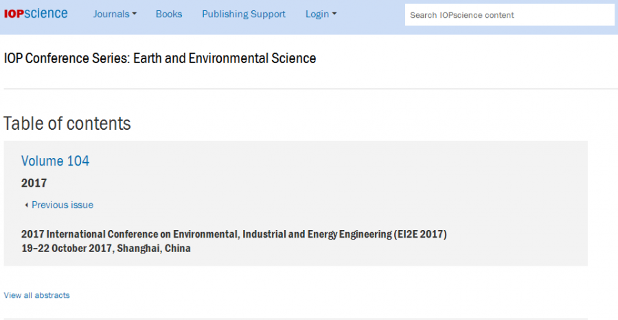 2017年环境、工业和能源工程国际会议(EI2E 2017)已经出版啦~