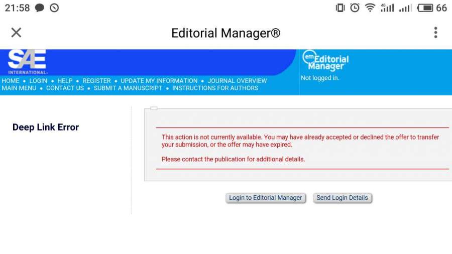 求助!12月中旬投的Sae,在圣诞节前进入editor invited状态,假期结束后1月3日更新为editor declined invitation,一天之后变成transfer了!邮件和投稿系统里的反馈原文是: We have determined that your article submitted to SAE International Journal of Passenger Cars: Mechanical Systems would fit best with another journal:? Insert title of recommended journal here Please indicate whether you agree or decline the invitation by clicking on one of the links below: Agree to Transfer? Decline to Transfer? Please respond by: . Thank you in advance. 但是问题来了,这推荐的期刊名称我死活看不到啊,反馈时间期限也没有。 请问各位大牛遇到过这种情况吗?应该如何优雅地去处理? 发自小木虫Android客户端 |
