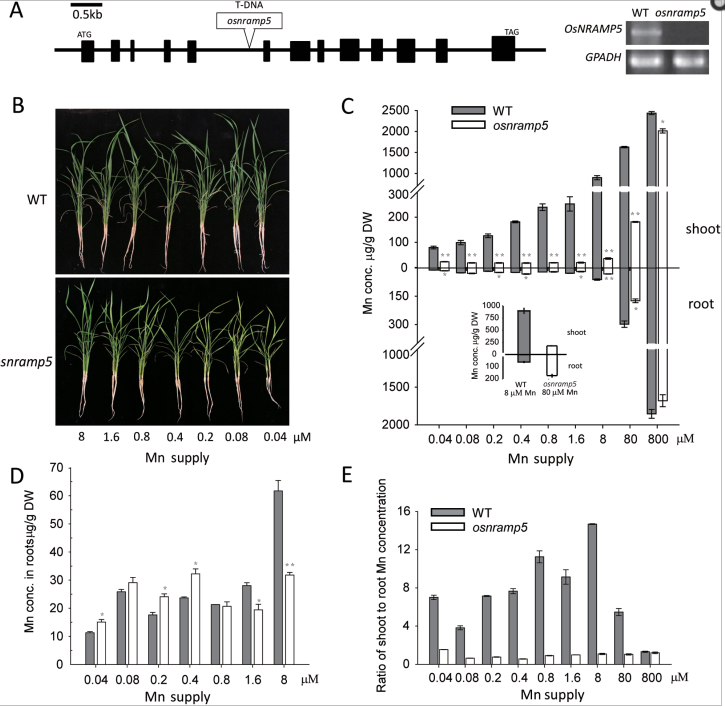 中国水稻研究所种质创新课题组研究发现了一个控制水稻籽粒锰积累的主效数量性状位点(QTL),并由此创制了高锰低镉水稻的优良育种材料,使高锰低镉水稻不再是育种家的梦想。相关研究成果新近在线发表于《科学报告》上。该课题组首席专家钱前研究员介绍,锰作为一种重要的矿物质微量元素,在人类日常饮食中往往摄入不足;而水稻籽粒的锰含量虽然可以通过生物强化作用增加,但有害重金属镉含量也同时上升。这成为水稻育种领域一大难题,迄今未见有高锰低镉籽粒水稻种质材料的报道。 课题组研究人员利用低锰籼稻品种93-11和高锰品种培矮64s为亲本的重组自交系,结合高密度遗传图谱,在水稻第7号染色体短臂上检测到一个代号为qGMN7.1的控制籽粒锰含量的主效数量性状位点。qGMN7.1中包含一个调控锰镉吸收的基因(OsNRAMP5),启动基因表达的序列变异引起了转录水平的表达差异,导致籽粒锰浓度的变化。该研究表明,OsNRAMP5基因在调控水稻籽粒锰含量方面起了重要作用。以93-11为背景的qGMN7.1染色体片段代换系,其籽粒锰浓度显著上升,镉浓度显著下降,根系的锰吸收能力增强。 锰(Mn)是植物必需的一种微量元素,在很多生理过程中都发挥了重要作用。OsNRAMP5是植物吸收Mn和钙过程中一个主要的转运蛋白,但是它是否参与这些金属离子从根部到茎部的转运与分布目前还不是很清楚。本文中,我们发现OsNRAMP5在颖壳高度表达。OsNRAMP5也在叶中表达,但表达量随着叶龄逐步降低。高精度观察表明,OsNRAMP5在根部的维管束特别是木质部周围的薄壁组织富集。即使供应高浓度锰,突变体osnramp5茎中锰的积累明显低于野生型植株。同时供应高浓度锰能够补偿突变体根部吸收能力的损失,但是不能弥补Mn从根部到茎部的转运,这表明OsNRAMP5缺失会减少Mn从根部到茎部的运输。这些结果表明,OsNRAMP5不仅水稻中控制Mn的吸收,还在Mn从根部到茎部的运输中发挥重要作用。 |