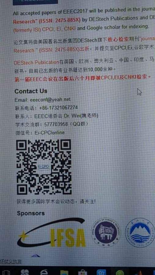 求助有人投稿那个eeec2017会议吗?感觉被骗了 已有1人参与