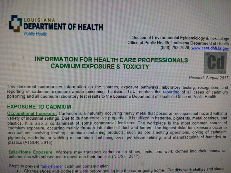 Information for health care professionals: cadmium exposure & toxicity.