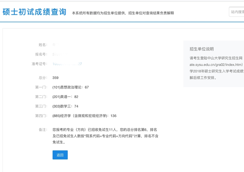 本科:济南大学国际经济与贸易 政治67 英一82 数三74 专业课(经济学综合)136 总分359,排名第6,数学单科未过中山院线 专业基础扎实,综合成绩排名年级前10,前三年一二三等奖学金各拿一次,全国大学生英语能力竞赛二等奖,六级600一次过,大三考取BEC高级证书。 现寻求调剂,南方a区一本(及以上)即可。 联系方式weixin:HD9794 发自小木虫IOS客户端 |