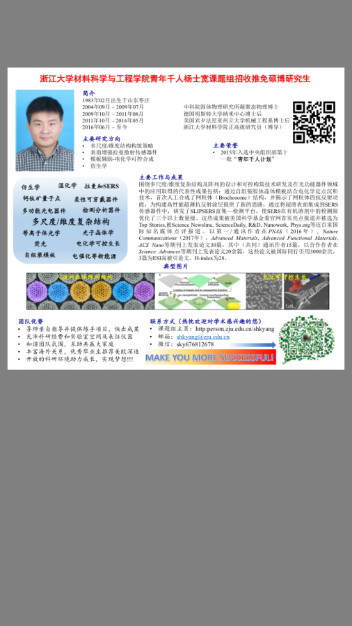 浙大青千杨士宽老师课题组招19届推免生
