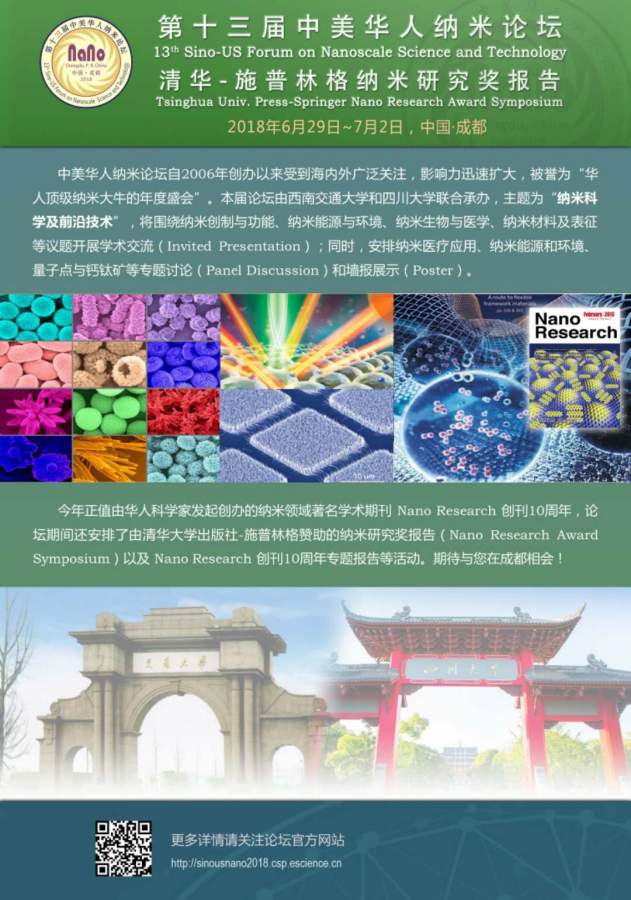 第十三届中美华人纳米论坛,2018年6月29日至7月2日