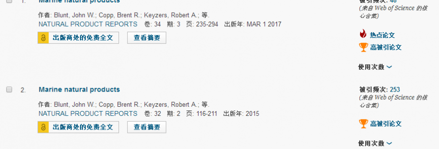 请问,在web of science里面搜索文献,怎么才能显示“高被引论文”这一项呢?