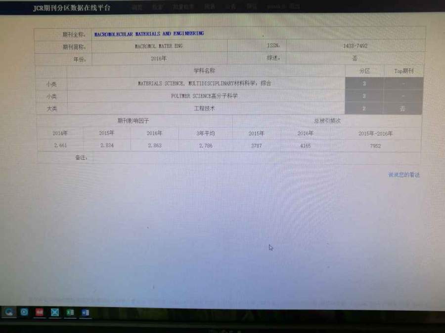 求帮忙在中科院期刊分区在线平台上查个期刊 平台网址:https://www.fenqubiao.com/ 期刊名:Macromolucular materials and engineering ISSN:1438-7492 查询后麻烦把网页截图发给我,十分感谢! |