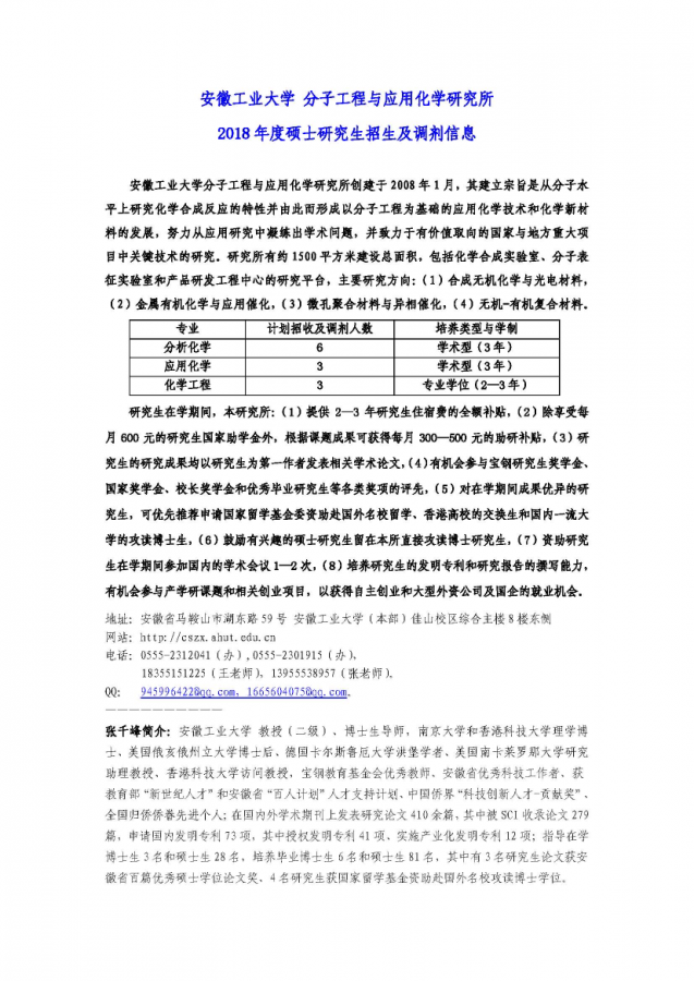 华南农业大学材料与能源学院招收化学工程类学术型硕士和专硕调剂生若干名。 调剂要求:总分及单科分数达到国家A类线,要求考数学一或二。 联系人:刘老师,13533373090,xtliu@scau.edu.cn,孙老师,183-2072-2418 |