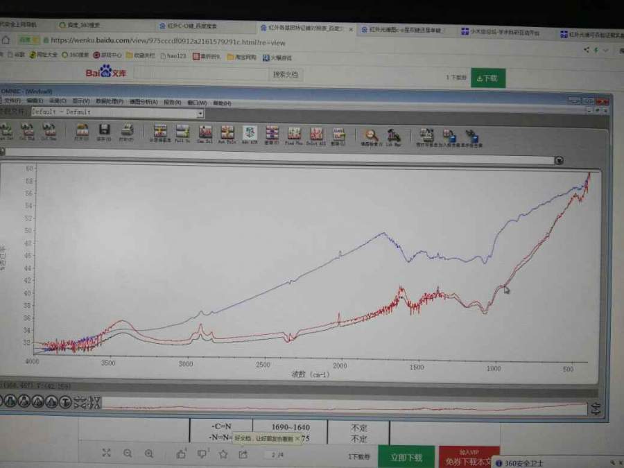 想在蓝线上找出C=O峰,或者C-O峰,让别的还没有。但是波长区间大,峰不明显怎么办?在?别的明显的峰又找不到是什么 发自小木虫Android客户端 |